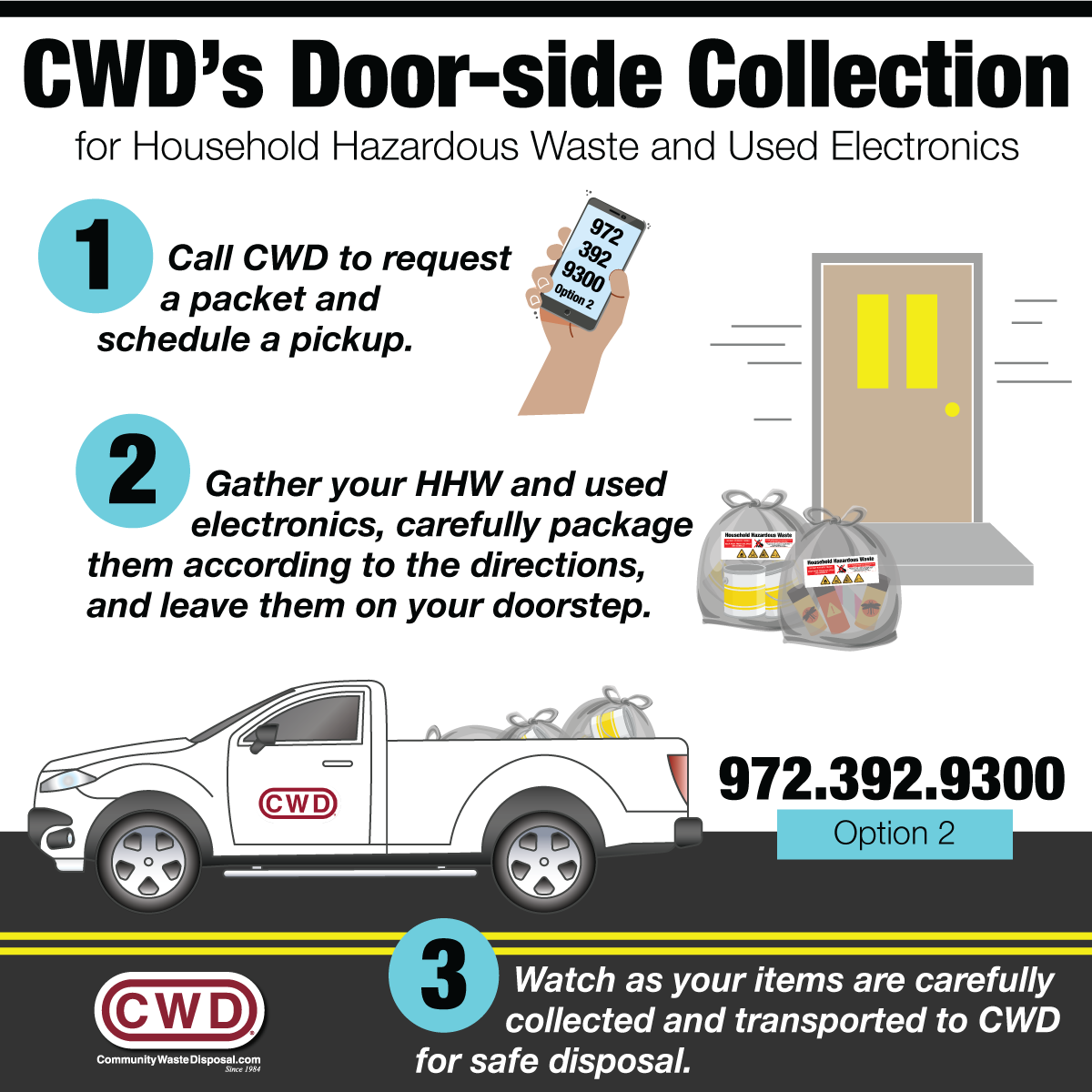 Effective September 1, 2023, the City of Dalworthington Gardens will move to Community Waste Disposal (CWD) for collection of garbage, recycling, and household hazardous and electronics waste.